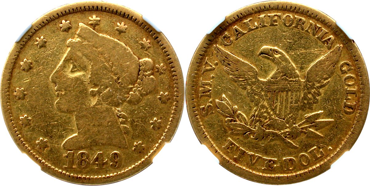 Dan White does it again. His global searching for fresh GFRC inventory has uncovered a new first for the U.S. gold price list. I won't share where and how Dan was able to locate this nicely preserved 1849 $5 Moffat & Co. gold piece. This well worn example grades Fine 12 and is certified in new NGC large font holder. There is a First Right of Refusal on the piece dating back to when first mentioned in the Blog. I've delayed the introduction as we required a change to the COIN system to add Territorials to the U.S. gold price list.