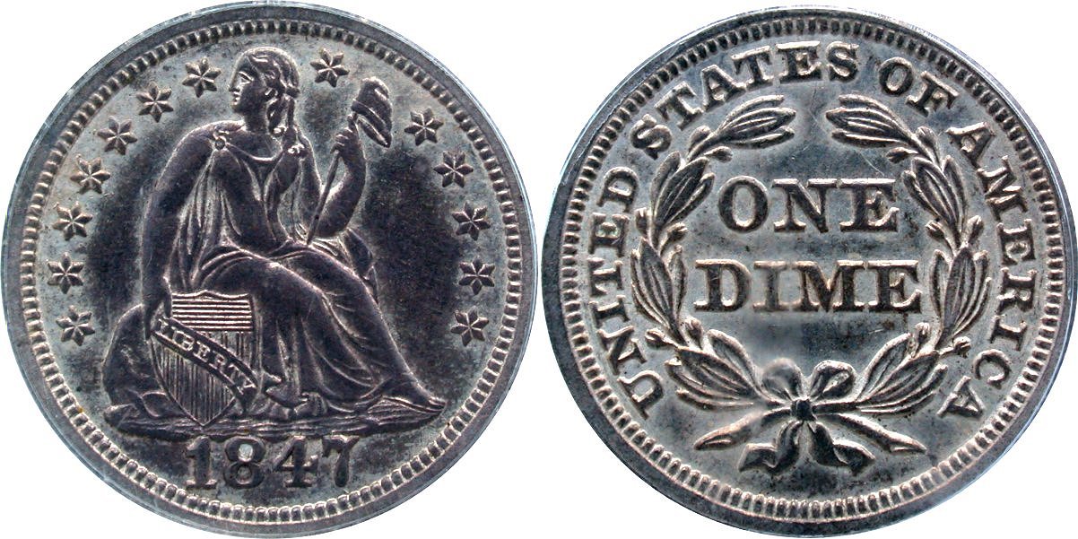 New December 17! All Digits Touch Base, Underrated Date, Steely Reflectance, Completely Choice, New Jersey Collection. By now, the Seated dime community should appreciate my respect for the 1847 date. In choice AU or better, the date remains underrated. CAC population is 12 in all AU grades with 6 at the Mint State level, This date typically come well struck as is the case for this New Jersey Collection release. Steely frosted surfaces are 100% original with a center splash of rose-gray obverse patination. The reverse is lighter tone with sharp reflective radiance. This lot MUST be sent to CAC for a shot at a green bean IMHO given the conservative grading and AU58 rub. Let's wrap up with a JUST BUY IT NOW recommendation. Housed in PCGS Gen 4.4 (2005-2011) holder.