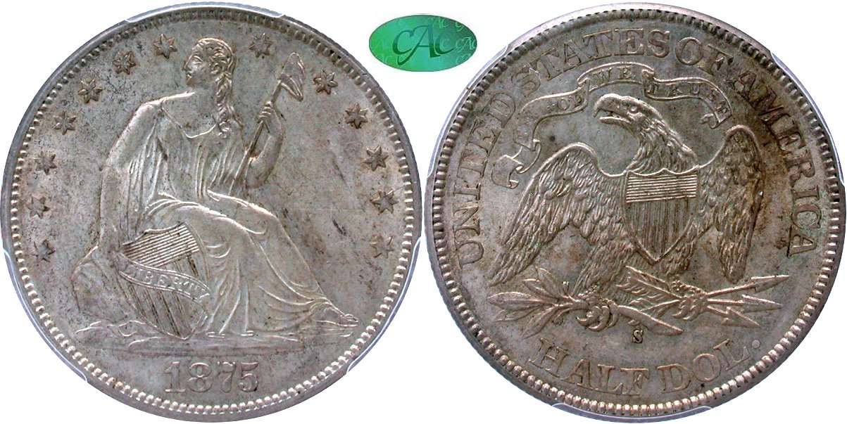 Lot 6 - 1875-S PCGS AU58+ CAC - Liberty Seated 50c