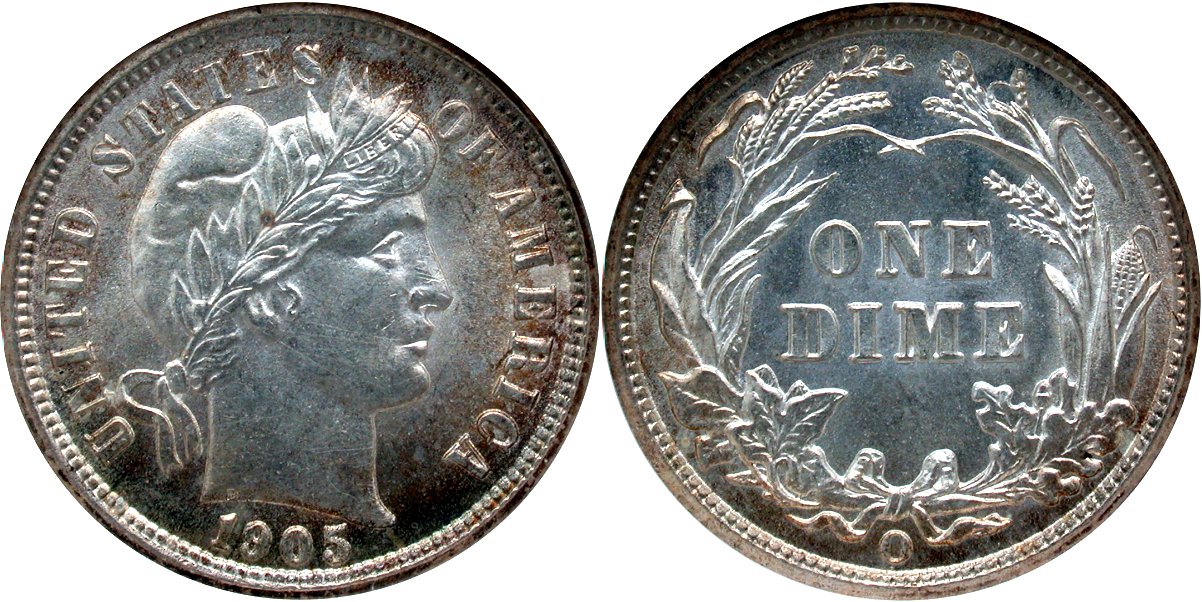 Barber 10C 1905O Barber 10C 1905-O